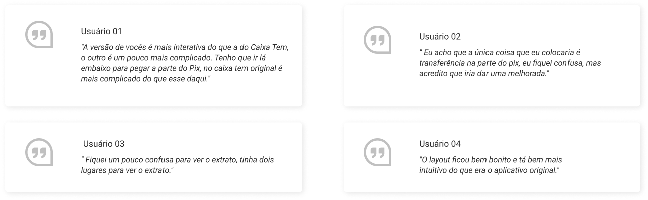 A média do SUS (método de avaliação de usabilidade com 10 perguntas em escala de 1 a 5) foi 96,87, indicando um índice excelente e a máxima eficácia no novo design do aplicativo Caixa Tem.