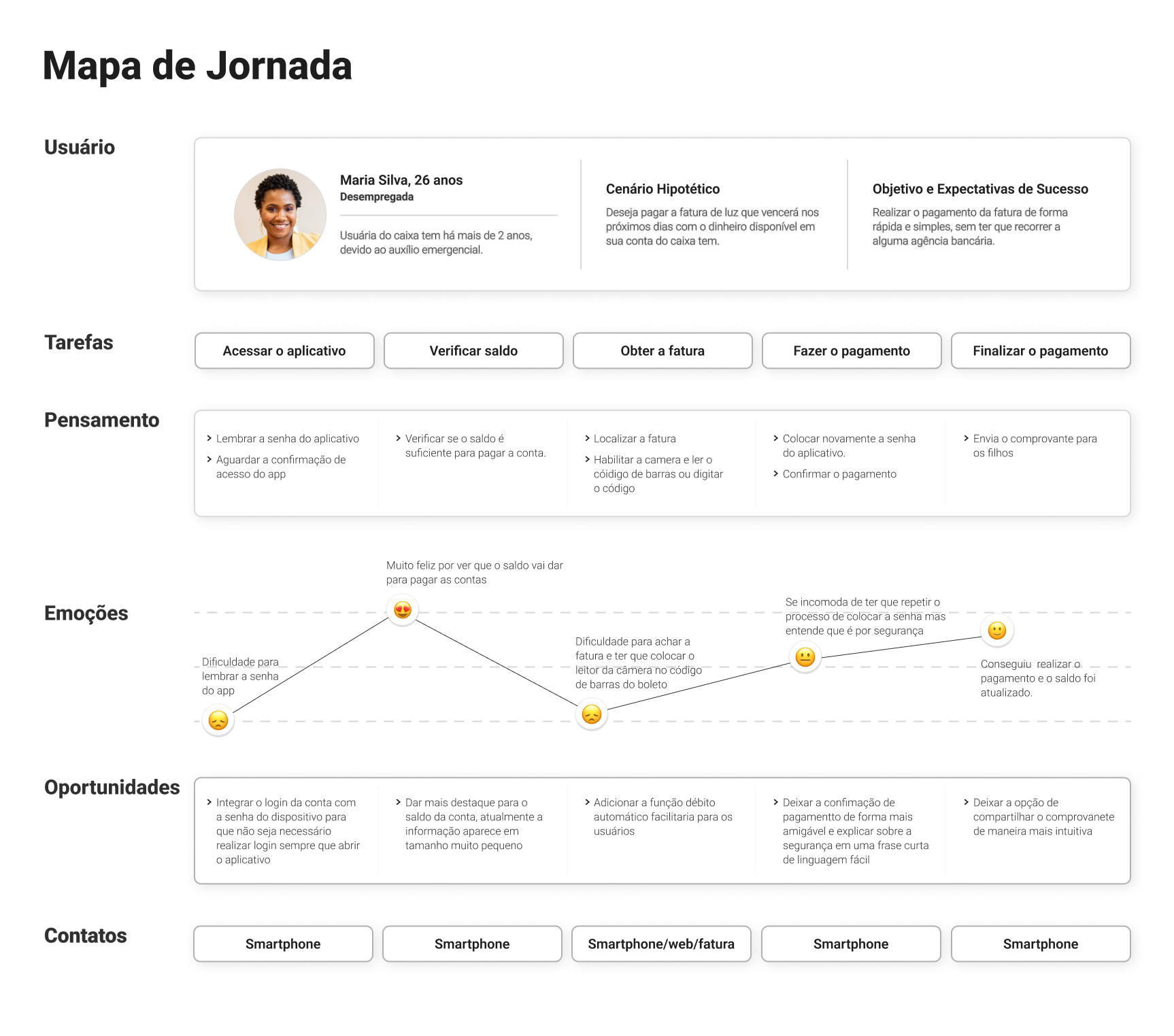 Também foi criado um mapa de jornada para identificar como seria realizada as principais atividades do aplicativo e quais seriam as principais dificuldades.