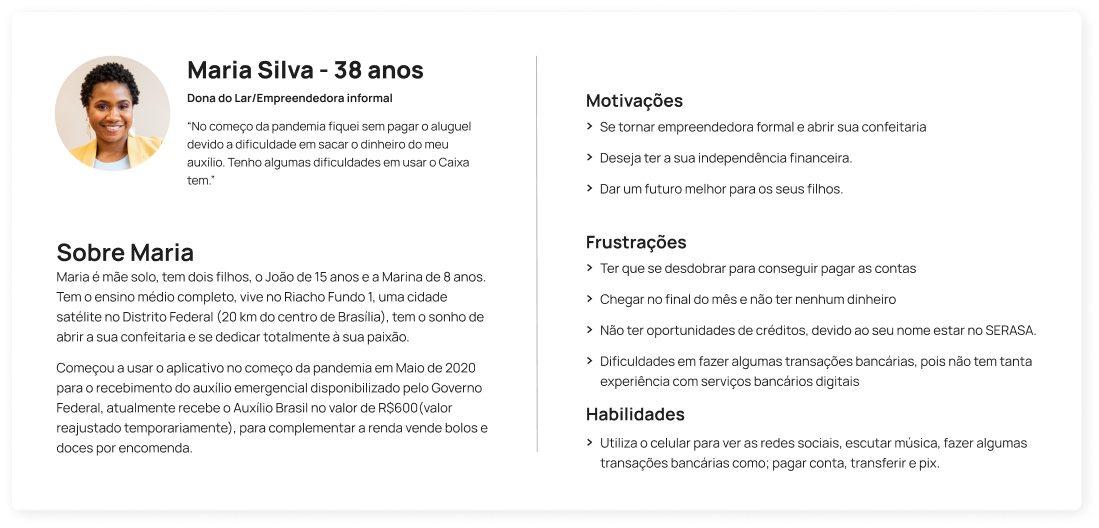 A partir das pesquisas, foi criada uma persona, que nos ajudou a indentificar melhor necessidades do usuário descrita abaixo: