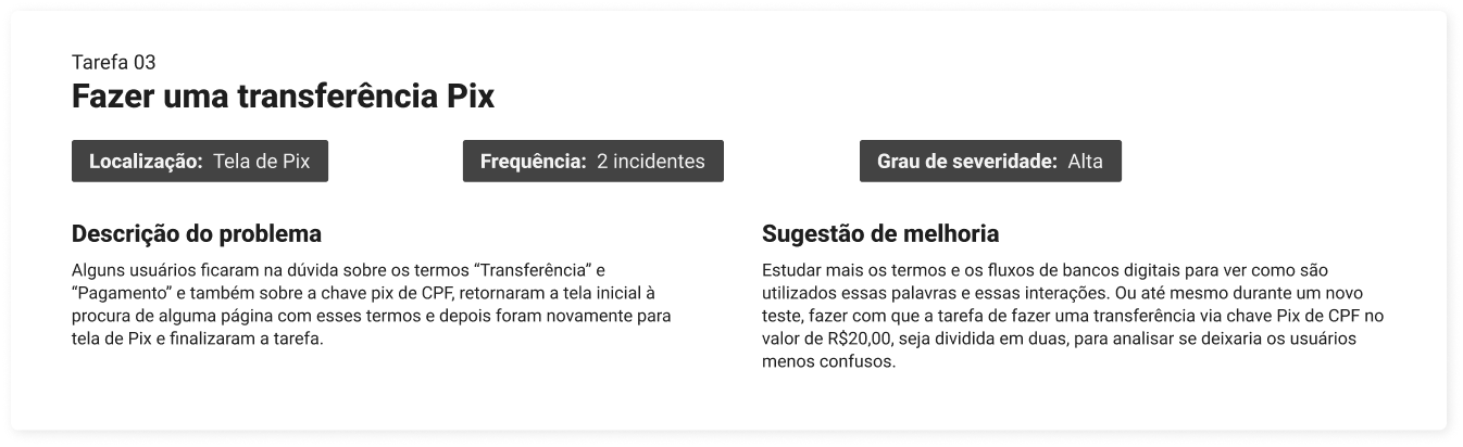 Baseado nos resultados dos testes, confirmamos que o redesign do aplicativo foi positivo. Destacamos que os usuários sentiram facilidade ao completar as tarefas e que recomendariam o uso do aplicativo. Por fim, todos os usuários completaram as tarefas em tempo e forma.