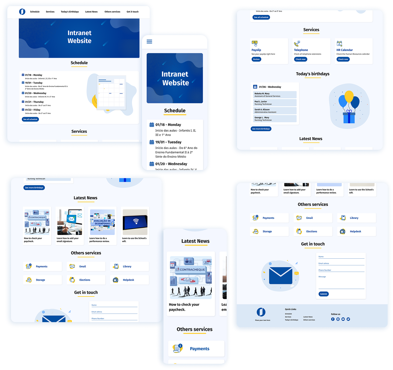 Realizado um redesign de um Portal Web Intranet de uma escola que nele tinha informações importantes para os seus colaboradores, como os eventos, notícias, contatos e outros links importantes dessa empresa. Esse site não tinha style guide definido e não era responsivo para dispositivos móveis.